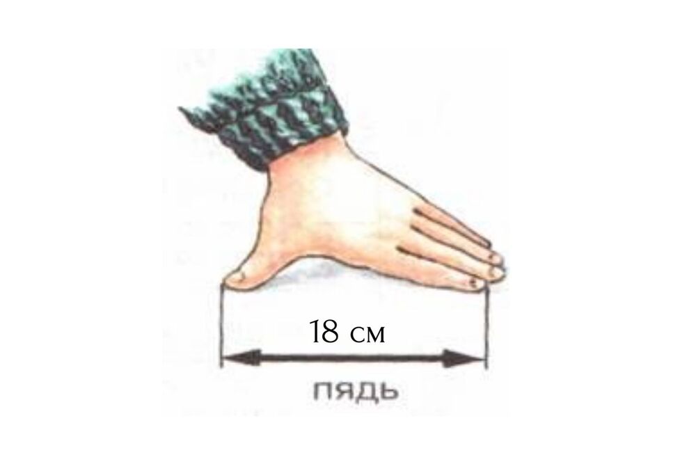 Пядь (пядень) равнялась расстоянию между двумя максимально растянутыми по одной линии пальцами руки – большого и указательного. Пядь равнялась 4 вершкам, а в современной метрической системе пяди соответствует расстояние примерно 18 см.