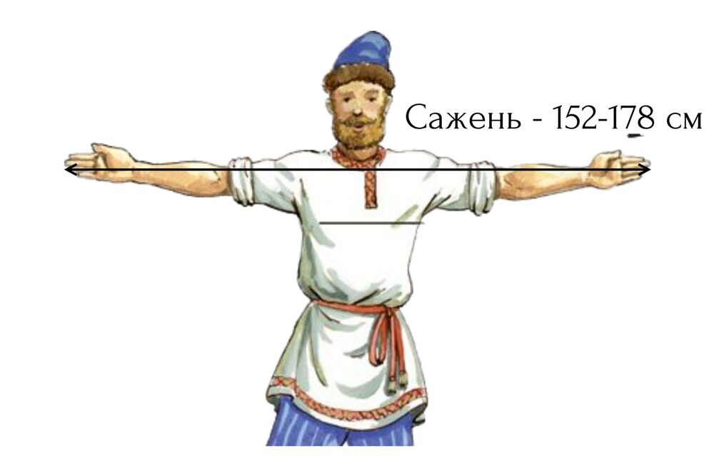 И, наконец, самая крупная единица измерения, связанная с телом человека, — сажень. Она равнялась расстоянию между кончиками пальцев рук, широко разведенных в стороны. Сажень равнялась 152–178 см, а поэтому ее официально не признавали и использовали только в народе.