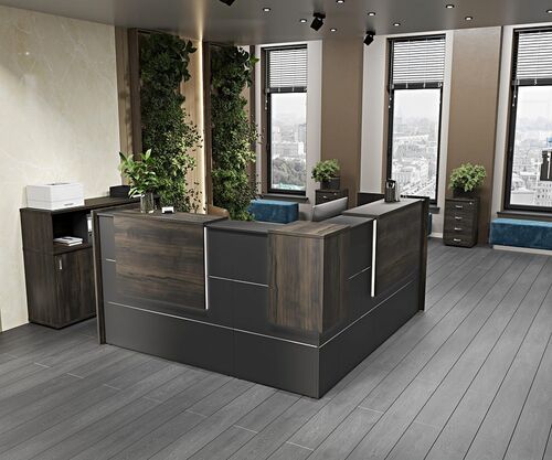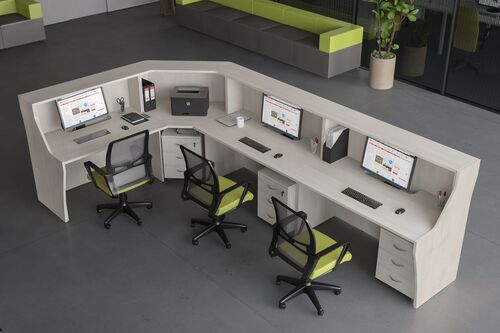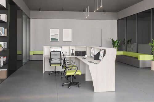 Рабочее место секретаря, менеджера, другого персонала за стойкой ресепшен нужно обустроить с учетом принципов эффективности и рациональности. Здесь должно быть удобно трудиться в течение дня, а прием звонков, заявок, оформление документов и другие услуги обязаны отвечать высоким требованиям по скорости, качеству исполнения. Вся офисная мебель для приемных из нашего каталога тщательно продумана по конструкции, дизайну и обладает множеством достоинств: