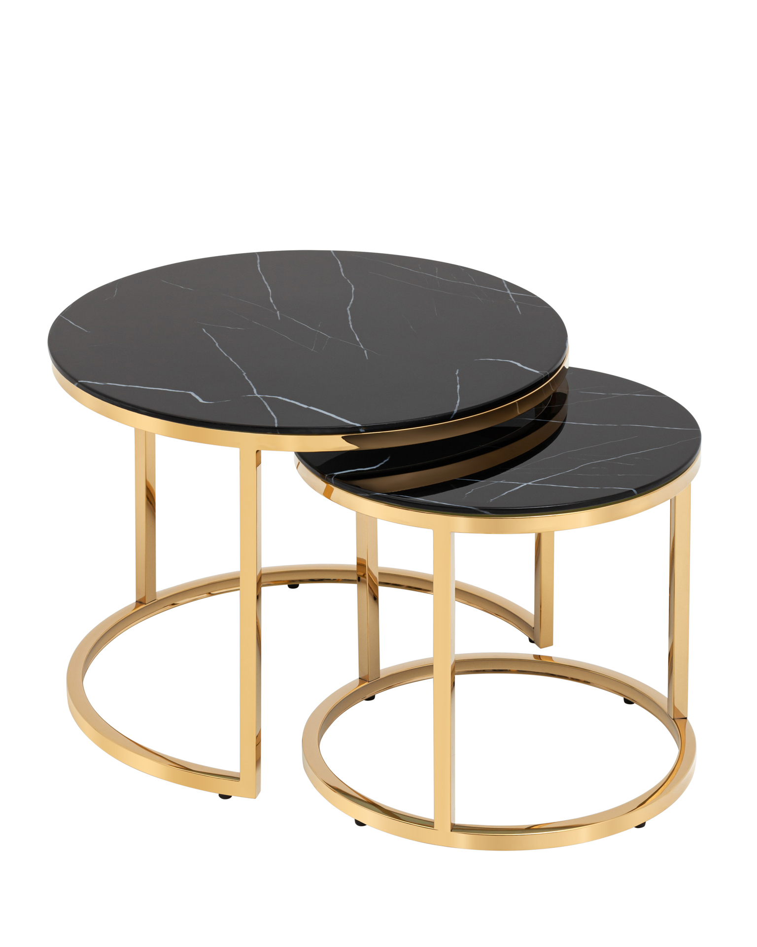 Набор журнальных столиков Селена 60 и 45 см стекло черный мрамор сталь золото Селена