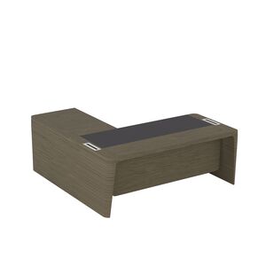 Стол для руководителя правый с кожаным бюваром, приставкой на малой тумбе и фронтальной панелью ПМ 165