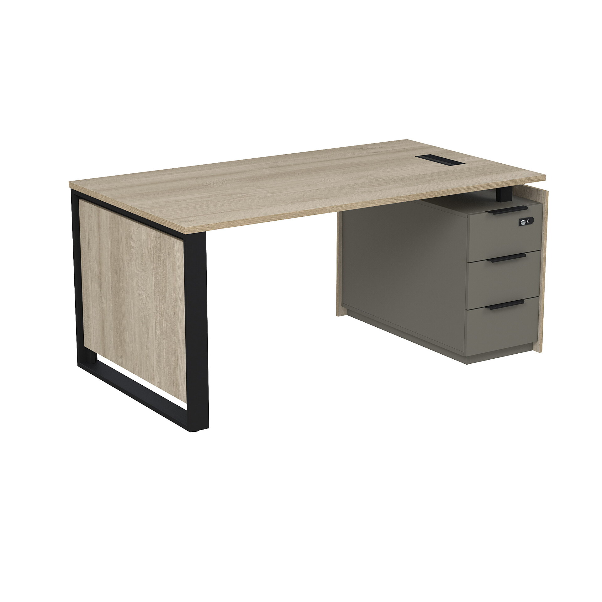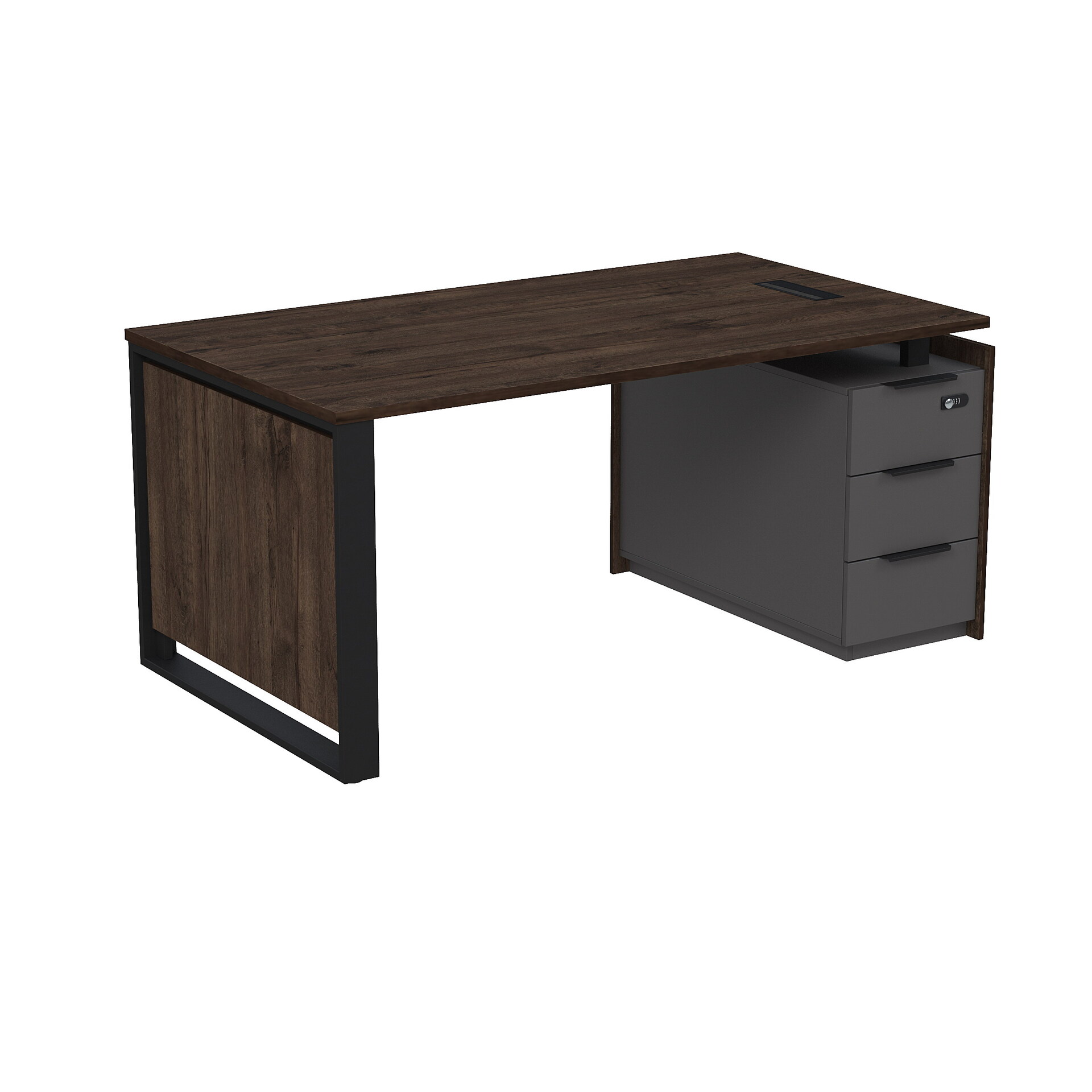 Стол рабочий с люч, на опорной угловой тумбе, с ящиками, с код замком 15СОЛУ-КЗ-ШД.1609