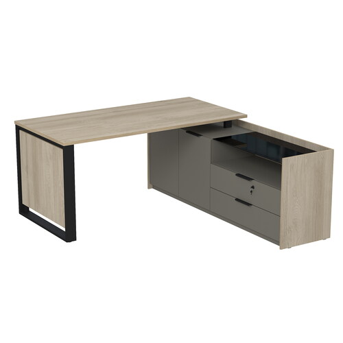 Стол рабочий на опорной двусоставной тумбе, с ящиками (метабокс), с замком 15СОД.1608