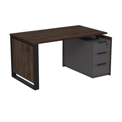 Стол рабочий на опорной угловой тумбе, с ящиками (метабокс), с замком 15СОУ.1408