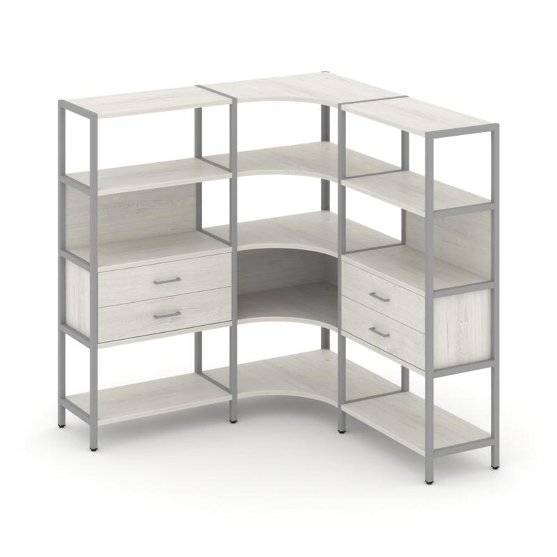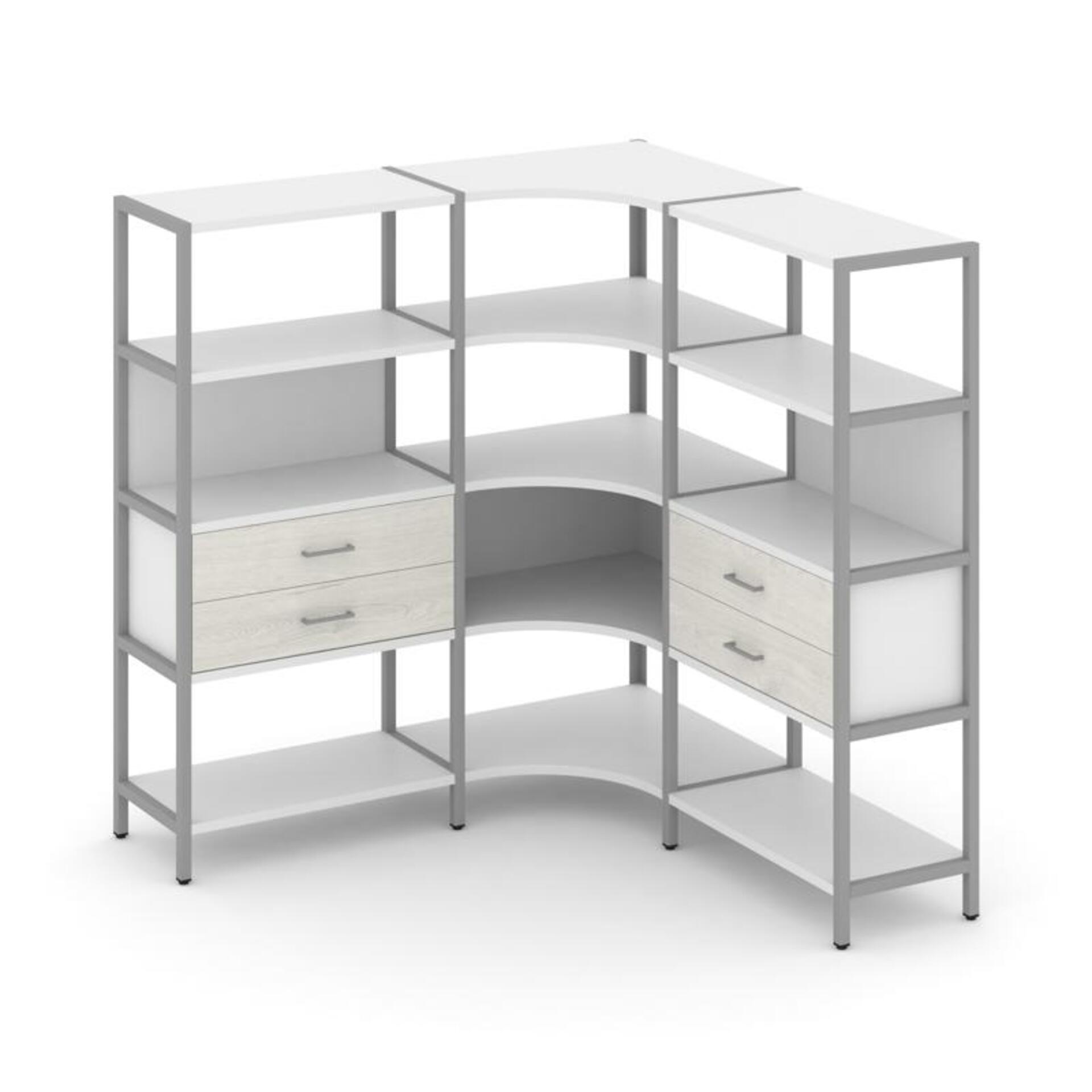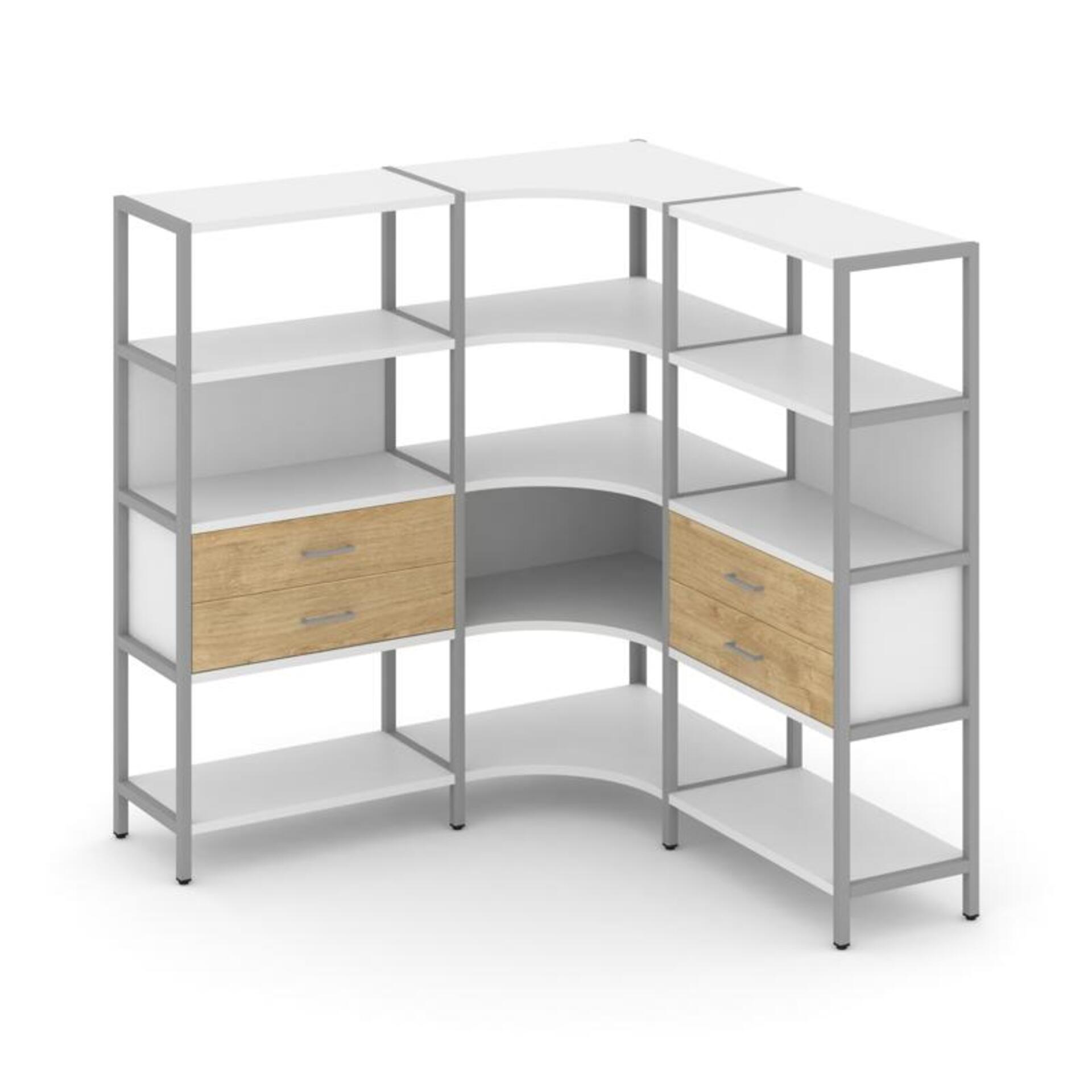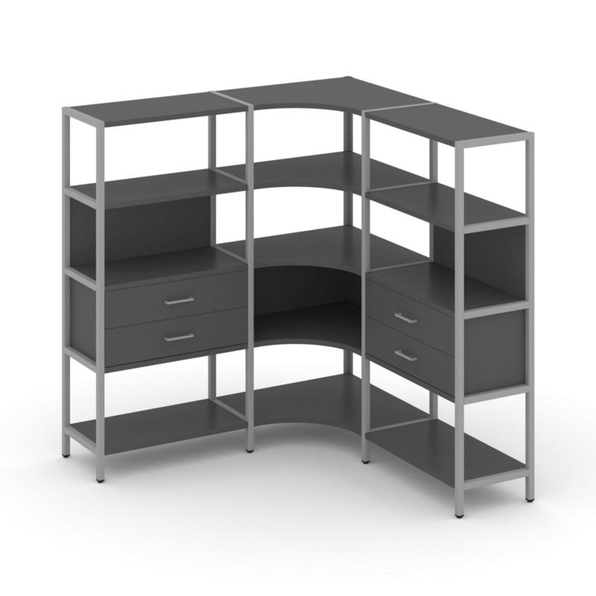 Трехсекционный угловой стеллаж четырехярусный с ящиками SN.STMU-431